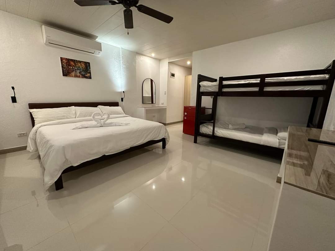 Ideal for families, this 30 sqm room features a king bed, bunk bed, balcony access, and essential amenities for a relaxing stay.